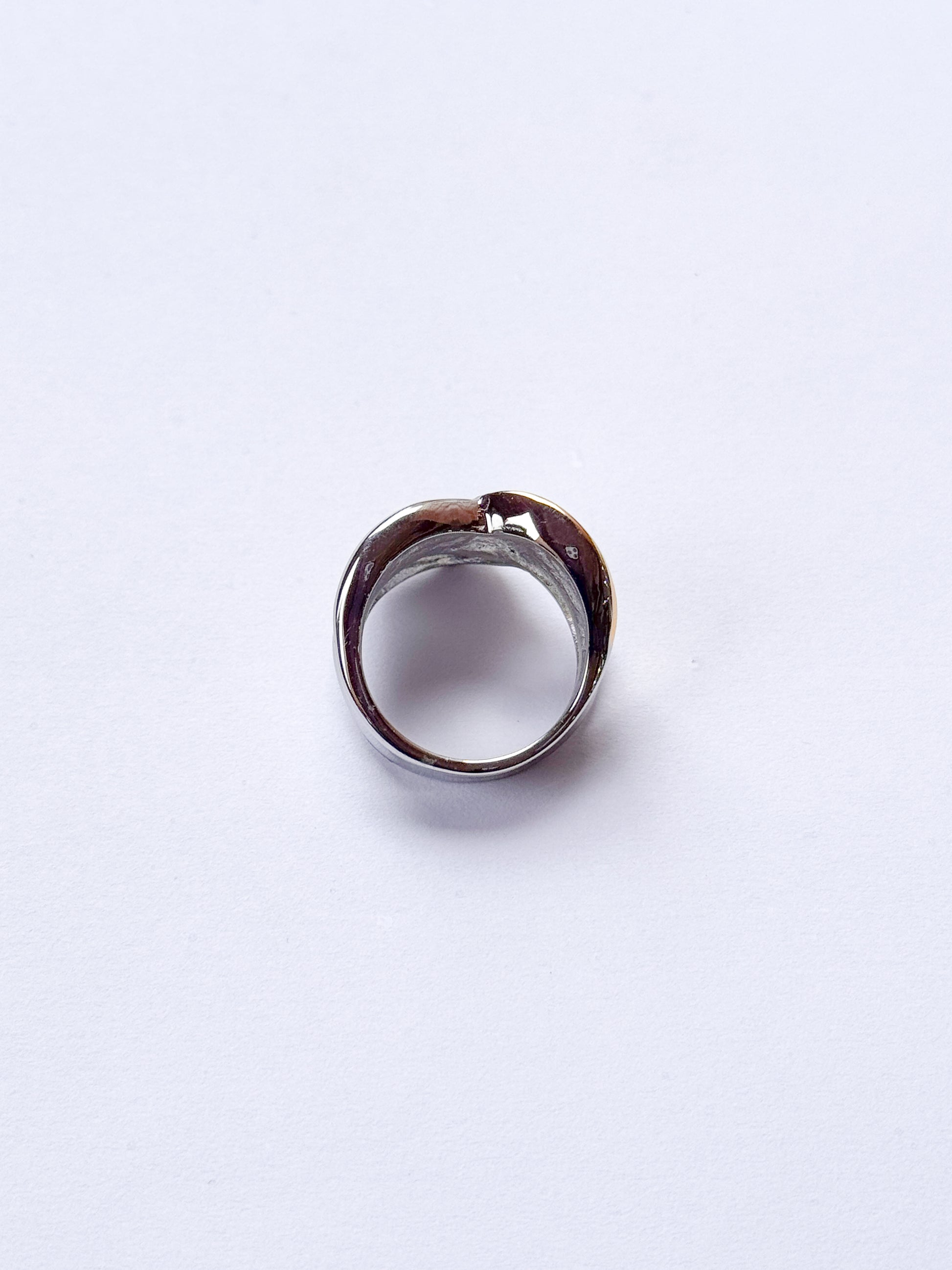 Anillo acero inoxidable dos oros dorado y plateado envejecido con brillantes