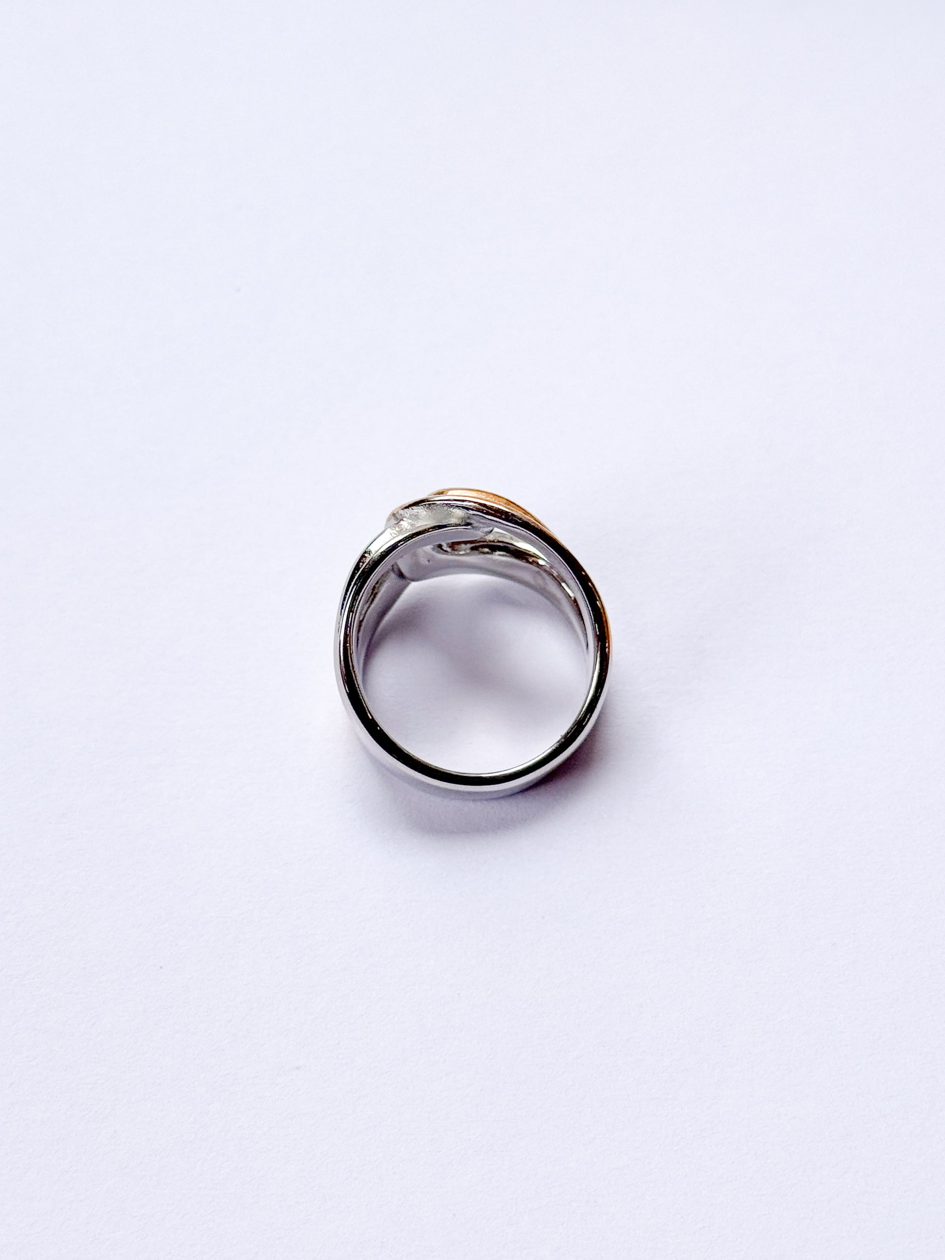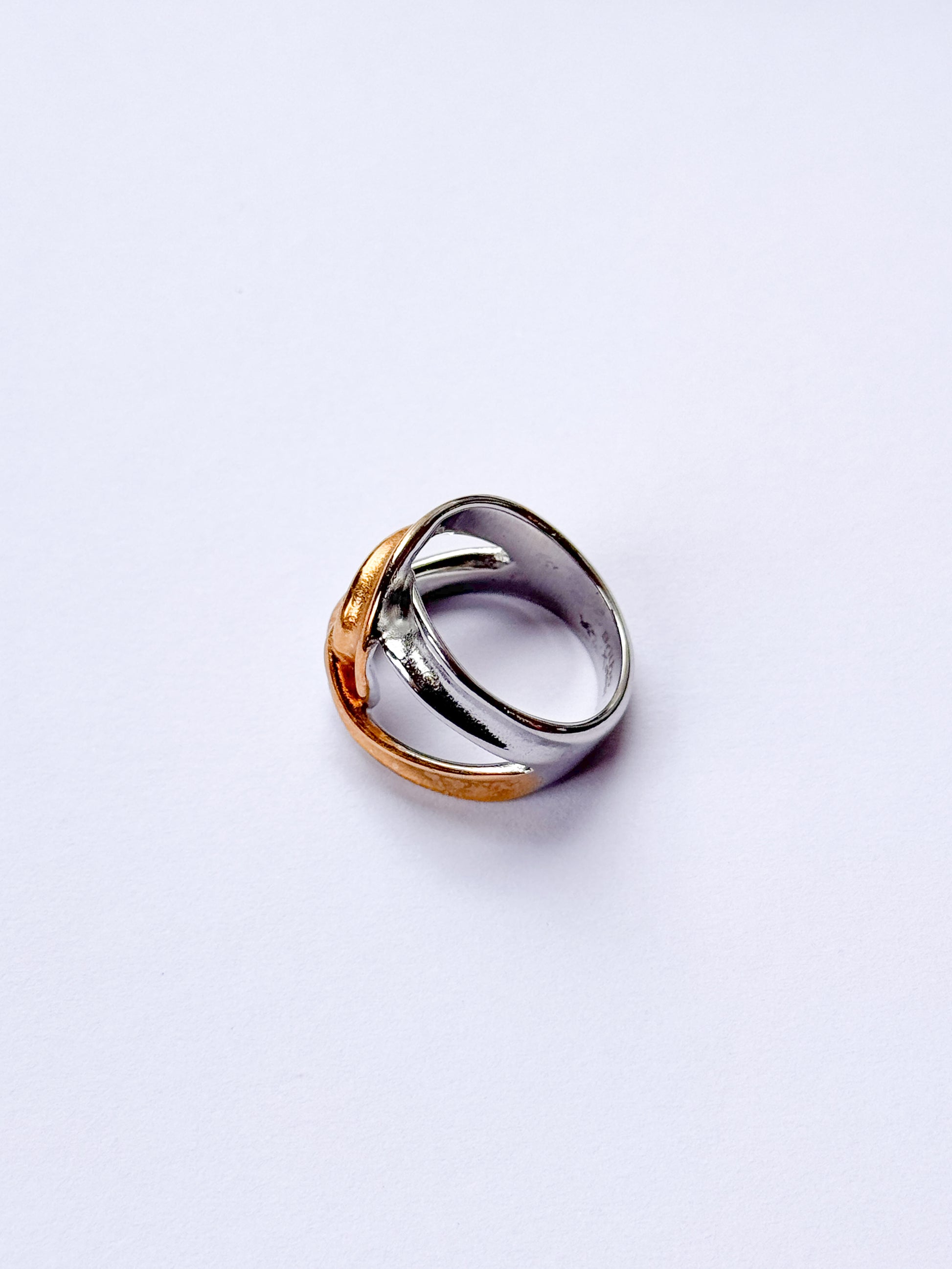 Anillo acero inoxidable plateado y dorado entrelazado