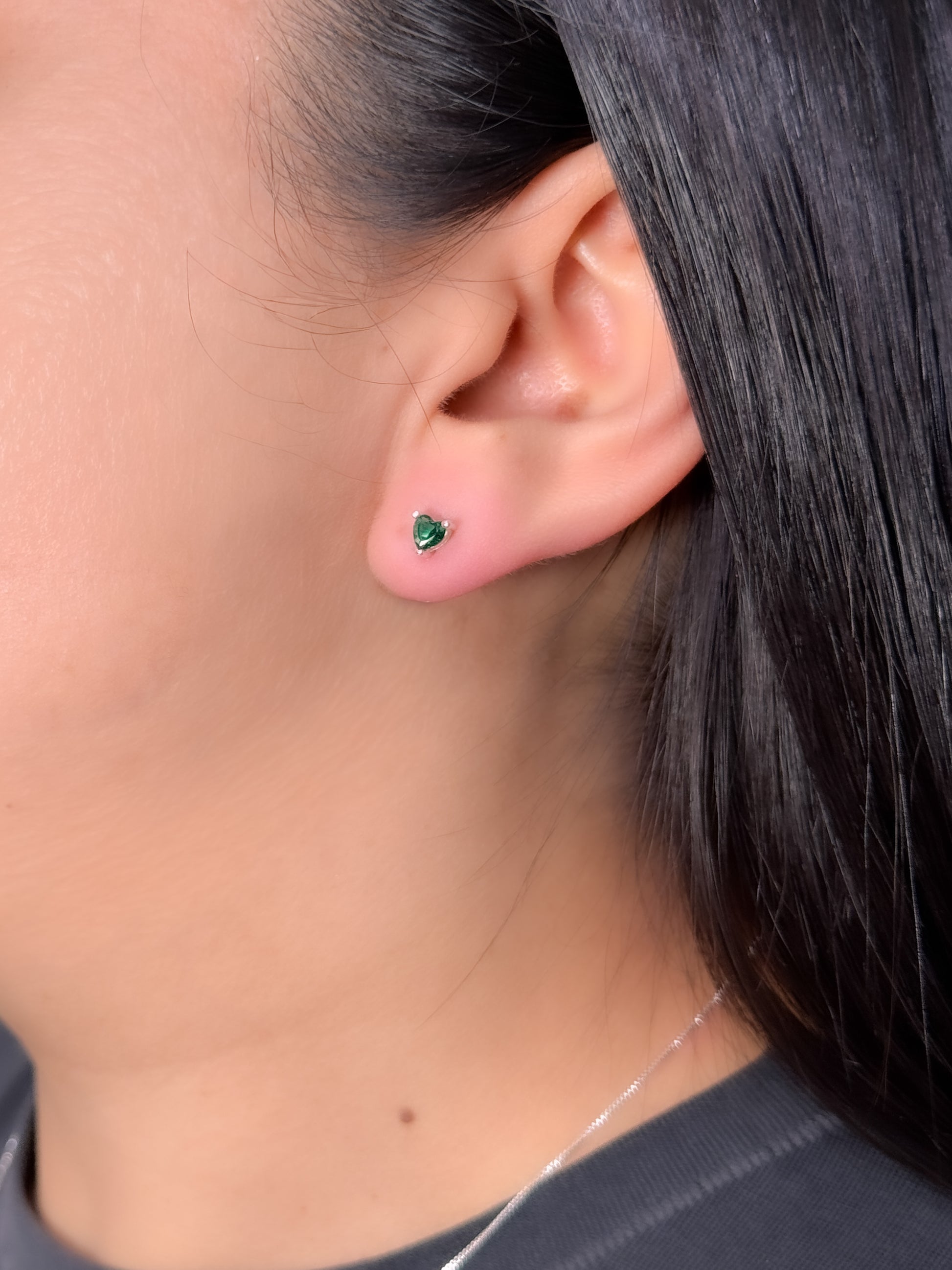 Juego en plata con dije de brillante en corazón rosa y verde esmeralda (collar+cadena+topos)