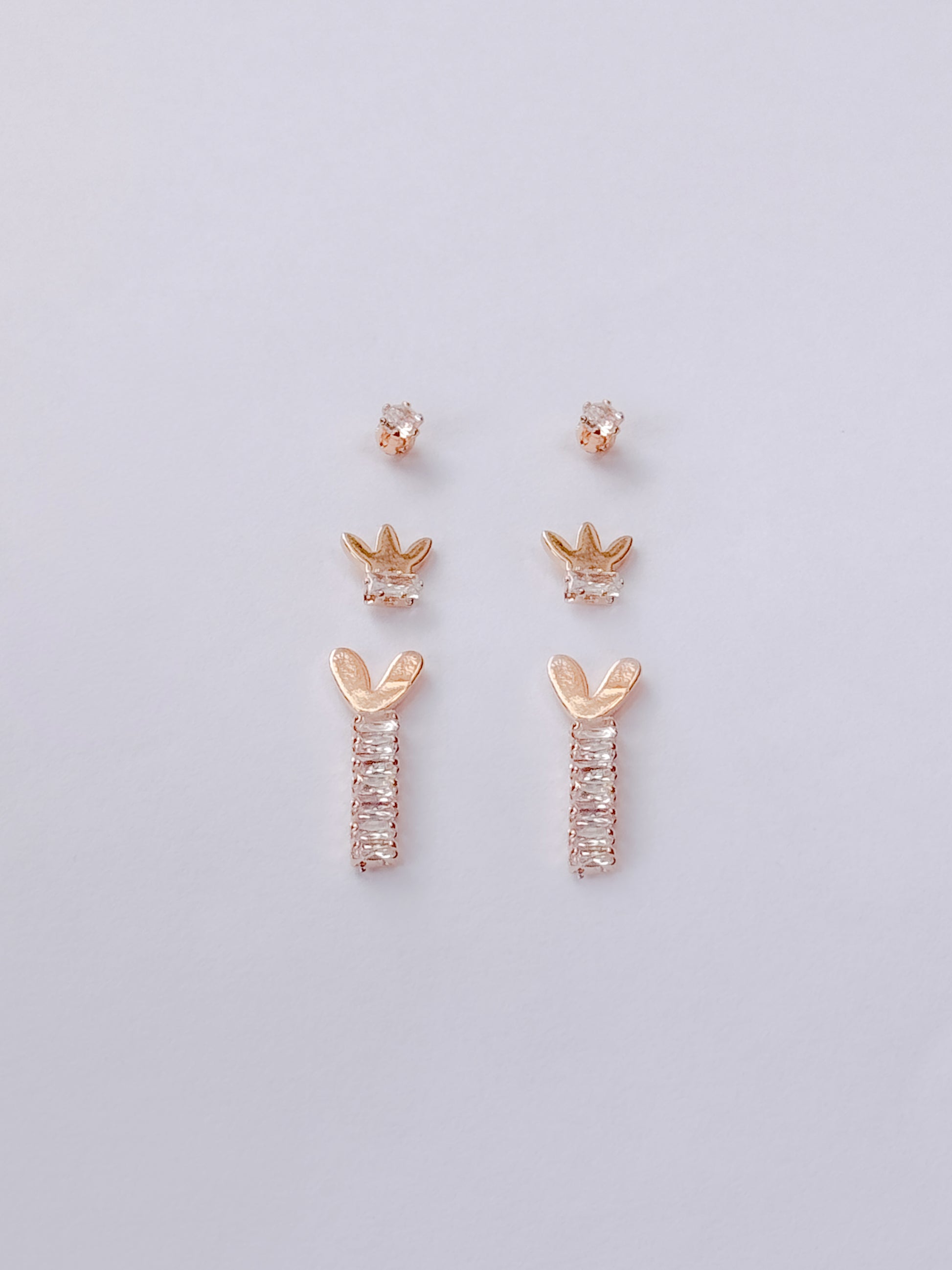 Set x3 (3 pares de topo) topos de circón redondo, coronas y corazón con caída de circones cuadrados